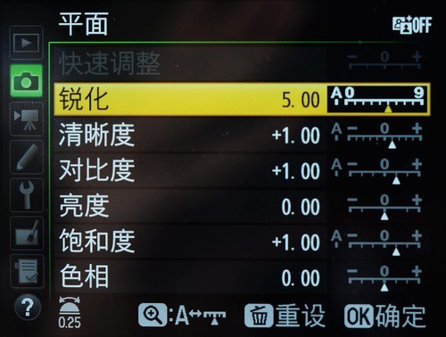 在“设定优化校准”选项部分,D750与D810相同,都设置了“平面”选项,但是这项功能在尼康D610机身上并没有。和其他模式相比,使用“平面”设定能最大限度的保留高光和暗部的细节,因此画面整体看起来会较灰,这也为后期提供了更大的调整空间。