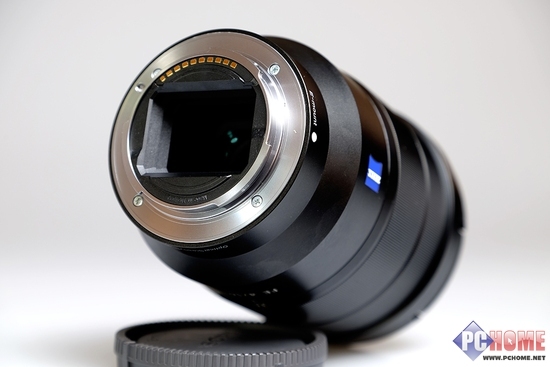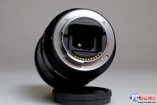 接下来到了镜头的尾部。索尼Vario-Tessar T* FE 16-35mm F4 ZA OSS的镜头尾端仍然采用了向内的收缩形状,外部仍然采用了工程塑料,而内部卡口部分则使用坚固耐磨的镁铝合金。由于索尼全画幅系列单反具有较短的法兰距,与其特制的E卡口镜头都具有与其他卡口的单反镜头更加凹陷许多的镜头后组镜片设计,可以充分保证全画幅相机的传感器边缘可以摄入充分的光线,用以提高图像的边缘画质,这是无法单靠相机内部影像处理器来处理和优化的。