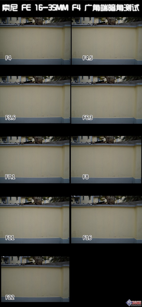 索尼FE 16-35mm F4 广角端暗角测试