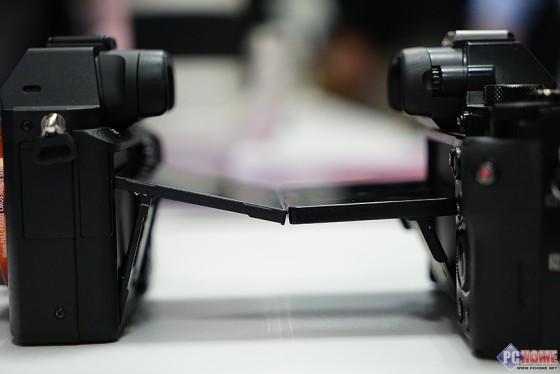 作为一台全画幅微单,这个微字其实相当微妙,当然为了在机身体型上尽量的做得轻巧,索尼方面还是很花心思的。具体看图,目测在可翻转液晶显示屏的厚度上A7II就要比A7R薄了2mm左右。我们相信在机身内在,索尼一样在看不到的地方花尽心思可以尽可能的让A7II称得上微单这么名号。