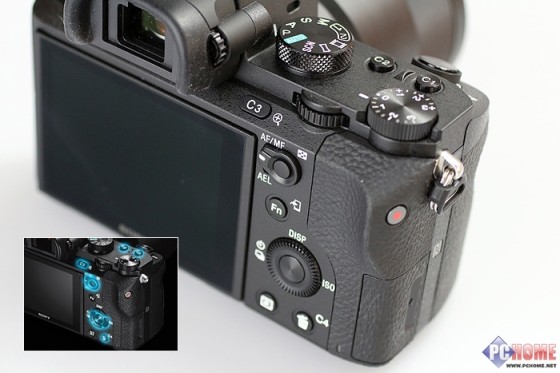索尼A7II将快门按键移到了手柄的顶部,原先肩部的空间中增加了一颗自定义按键。看小图中使用蓝色标记出来的位置,索尼A7II总共有8个位置可以自定义从而实现12项自定义功能。