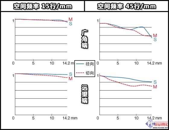测试结果呈现一个奇怪的现象,无论是全开光圈的F2.8还是最小光圈的F22,在整个光圈变化的范围内表现出的分辨率几乎是一致的,不仅中心分辨率如此,边缘分辨率也是如此。按照标准来说,这显然是不可能的,就算全开光圈可以做到非常优秀,但是最小光圈也不应该有和中间段的光圈几乎没什么分别的分辨率表现。另外,在应该表现出最高水准的F5.6-F8的光圈段内也没有达到官方MTF曲线给出的水准,笔者认为造成这样一个结果的唯一解释只有一个,那就是富士X-T1的像素水平已经无法满足这支新镜头了(富士X-T1的实际像素约为1600万),也反向例证了富士XF50-140mm F2.8 R LM OIS WR拥有的高素质水准。明年,富士将会推出拥有更高像素的新品无反相机,到时这支F2.8恒定长焦镜头的的水准必将尽数发挥。