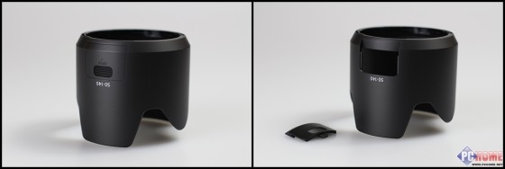 在遮光罩的底部有一个方便开合的小窗,虽然不是什么创新之举,但毕竟这样的设计还是比较小众的,可不要小看这个小窗,可以方便在使用偏振镜的同时使用遮光罩。