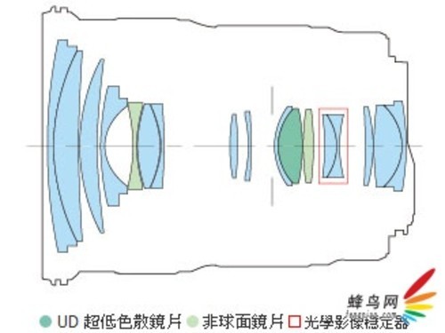 具体来看,该镜头采用12组18片光学结构,内含了一枚UD超低色散镜片和一枚大直径玻璃研磨非球面镜片,光学结构中还包含了电磁驱动的九片光圈叶片。另外,该产品的最近对焦距离约为3.3m,最大放大倍率约为0.13倍,并可以支持4档防抖补偿。