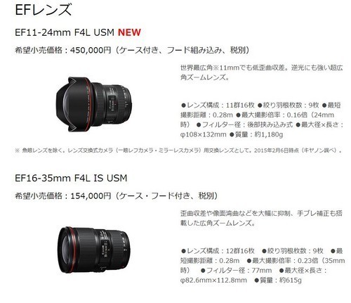 正如想象中一样,与5DS一起发布的全新EF 11-24mm f/4L USM镜头,被列在了推荐镜头的首位。