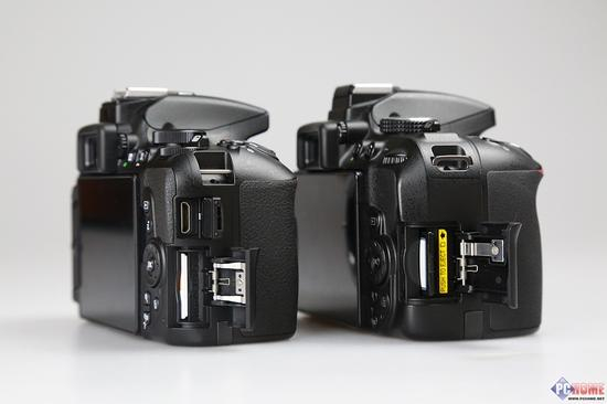 D5500(左) VS D5300(右) —— 机身右侧卡槽与接口仓布局