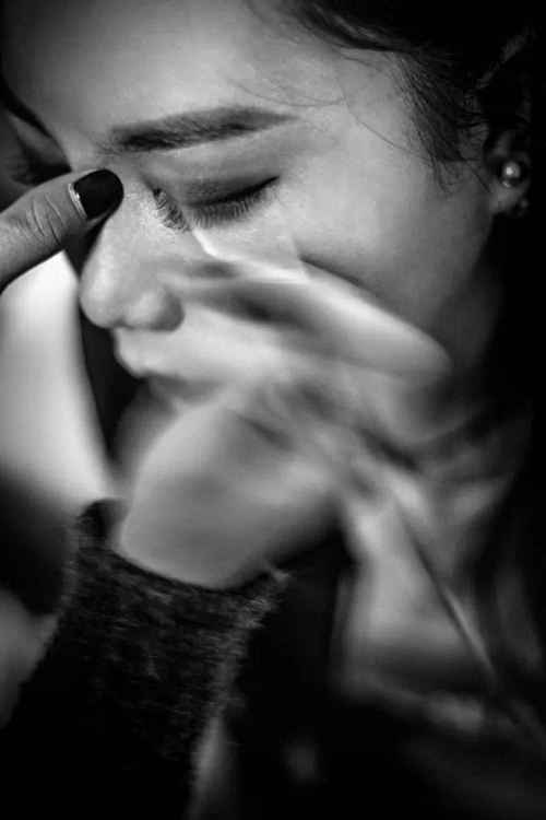 新娘的化妆时间,化妆师的笔在新娘的脸上飞快地游走,我利用慢门拍摄,强化出这种动与静的对比效果。化妆笔是虚的,眼睫毛是实的。