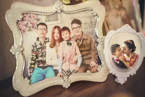 镜子也可以用来制造时空穿越感。我利用镜子将现实中的新娘和弟弟与相框里的合影并置,我并没有告诉她要拍什么,只是让她到确定的位置上,并引导他们自然地互动。