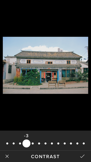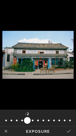 首先出现的是曝光,增减图片亮度。这张图原片有些过亮,所以减少亮度曝光,让照片看着不再晃眼。这个可以根据照片本身的风格和特点来设置。
