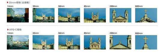 佳能官网上说明了全画幅EF镜头与EF-S镜头之间的取景视角差异