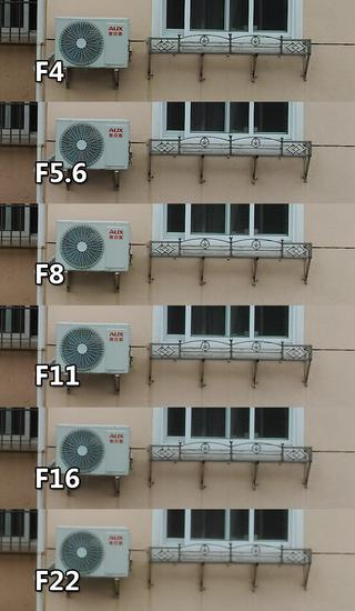 我们再来看看适马dp0 Quattro中心画质锐度与边缘画质锐度的情况,以下我们按整挡选取了F4至F22各挡光圈下的对比。拍摄条件均为固定脚架,遥控2秒快门拍摄,并100%放大后截图进行对比。