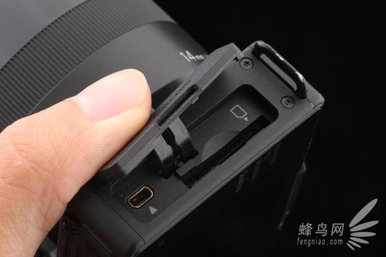 适马dp0 Quattro的电池仓位于相机底部,而存储卡槽则位于手柄的另外一侧,存储卡槽外部是软橡胶材质盖子,具备一定防滴防尘能力。