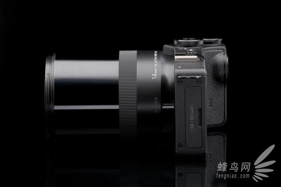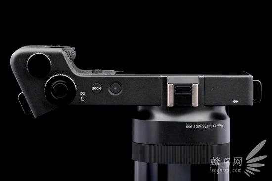 适马dp0 Quattro的整体造型采用扁长型设计,从外观看来,纤薄的机身搭配硕大一颗硕大的镜头,难免有一种“头重脚轻”之感。适马dp0 Quattro搭载的是一支14mm F4超广角定焦镜头(等效35mm全画幅相机21mm焦距下视角),最近对焦距离18cm,超广角的焦距可以呈现令人震撼的视觉效果。