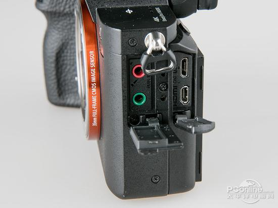 因为全画幅微单TM索尼A7R II是一款支持4K规格视频拍摄的产品,因此视频方面的输入输出接口少不了,耳机监听、麦克风、HDMI、USB接口都具备,不过遗憾的是,作为一款超高像素的相机且支持4K视频拍摄,USB接口并没有采用3.0的标准。