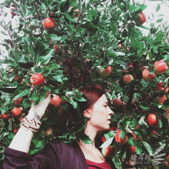 在这里,我选择把我的模特放在了苹果树的前面。我想通过强调一年当中这个时节的特色来展现这个季节的美感。在这里,苹果产生了一个独特的视觉冲击力,它 们告诉你夏天已经结束了,同时还给画面增添了一个美妙的流行色。寻找真正代表季节的主题,并利用它们来成为你的优势。让你的人物充满整个画面来创造一个亲 密的感觉,形成一个强烈的主题。