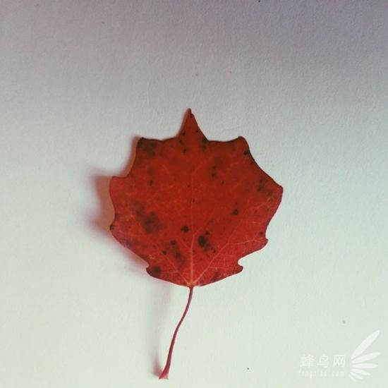 而且不只是从上面拍摄,要尝试不同的拍摄角度。在上面的照片中,我选择从这个特定的角度拍摄,这样我就可以同时将叶片和美丽的风景包含进画面。另一个很 好的选择是走出去收集树叶,然后带回家里拍摄。这样更容易获得一张好照片,因为你可以更多的控制背景和光线。如果你是在一个大风天在室外拍摄,而风总是会 吹走你的树叶的话,不如这样尝试一下。