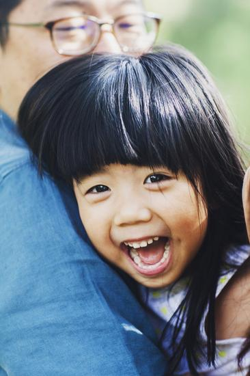三四岁的淘气小妞,随时随地都喜欢玩“捉迷藏”,从她笑得咯咯发抖的小肩膀和小背影就能知道她正玩得疯、得意得很。于是我悄悄绕到爸爸妈妈的身后,举 起相机对准了正在咯咯傻笑的小淘气,而她因为“捉迷藏”被我发现了,笑得更前俯后仰,不一会口水就流到了爸爸的衬衣上。