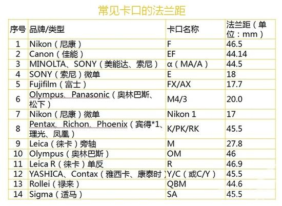 3、法兰距的区别