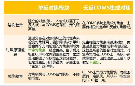 可以看出,无反由于取消了反光板系统,所以结构更简单,也容易把相机做小。但是由于如今无反又加入五轴防抖之类的系统,导致相机也开始越做越大。再加上 镜头由于光学结构的限制也很难做小,所以无反系统在体积重量上虽然有一定的优势,但并没有实现质的飞跃。所以重量和体积绝对不是单反与无反最明显的区别。 那么到底区别在哪呢?我认为主要有存在以下几个方面: