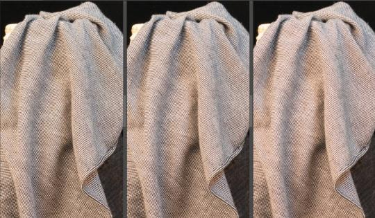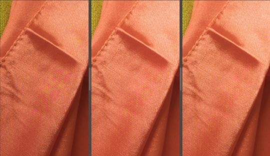 该可调节光学低通滤镜有三档调节,设置包括“关闭”(细节优先),即在优先考虑分辨率的情况下不使用低通滤镜来提供可对比的效果;“标准”(均 衡优先),即追求分辨率、移除摩尔纹和伪色彩之间的平衡;以及“高”(控制摩尔纹优先),即更着重于减少摩尔纹和伪色彩;此外,还可从驱动模式中选择低通 滤镜包围曝光模式,从而方便对比不同设置的效果。下面我们拍摄一款丝绸围巾来验证该功能的实际效果: