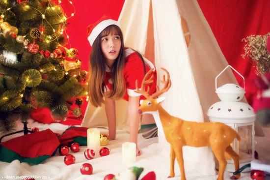 道具:圣诞树,小彩灯,蜡烛,麋鹿,以及圣诞气氛的背景布等(室内布景圣诞元素越多越好,因为这样也方便拍摄模特配合道具去摆动作)