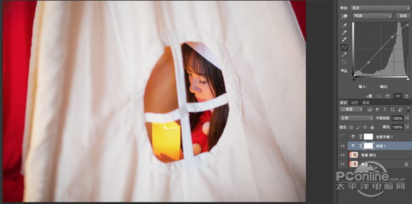 2、接着调整光线:第一步拉了一条“S”型的曲线,加大图片的反差;然后在高光处往下拉了一点,目的是让高光泛出奶油般的白色,不至于太过的溢出;