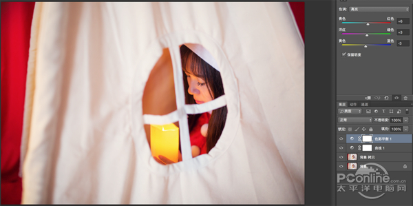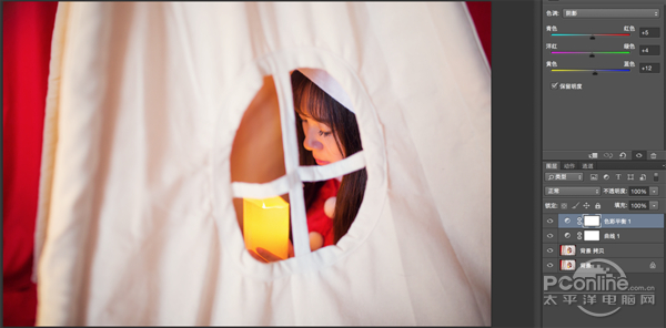 3、色彩平衡的高光调整:细节调整如图,目的是加强高光的黄色,让整体的环境氛围看起更加温暖,刚才拉高光使高光泛白的另外一个作用是,在这里可以更加容易使高光部分显出暖色调;