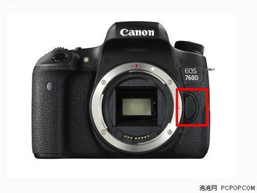 上图红框处的按键是镜头释放按钮,按住这个键就会松开扣住镜头的卡口,然后拧下镜头;安装镜头时同样也要先按住该键后,再放置镜头。安装镜头时,卡口正上方的红点标记要与镜头接口上的红标对齐,然后正确拧紧即可。
