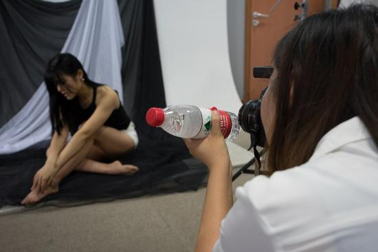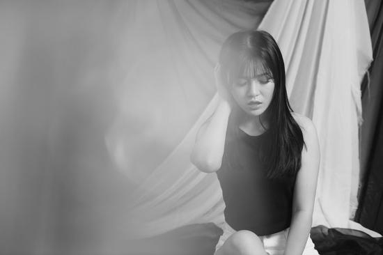 这次主题表现的情绪是有一些伤感、迷惘的情感,在摄影师跟模特沟通完之后,她很快进入了状态,当镜头对准她时候,她对情绪把握非常到位。那么她是怎么做到呢?在拍摄时候我们询问了一下模特张弦。