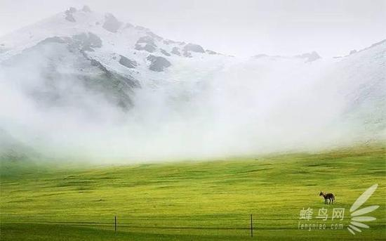 天山山麓的雪中浓雾