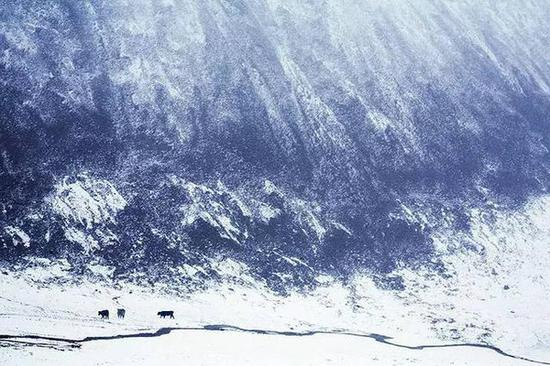 在雪景中,如果有人物的活动,必定会为画面添加不少灵动的感觉,由于雪地的明亮,我们可以很容易把雪中的人物处理成剪影效果,应先设定好构图,充分预测环境中人物的动向,耐心等待,果断按下快门。