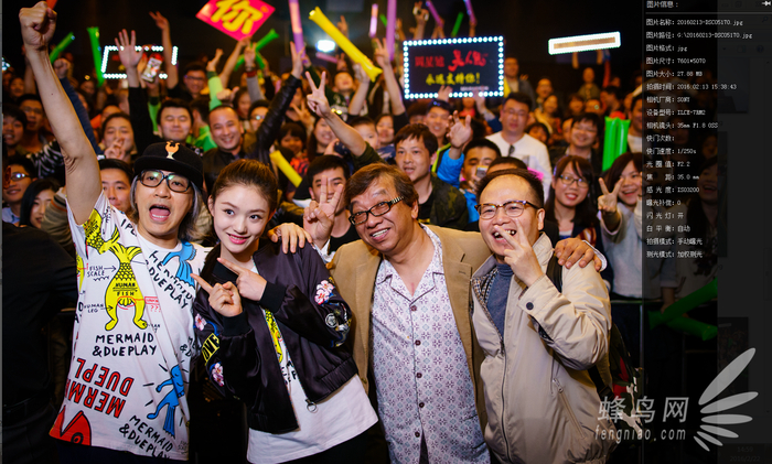 这张照片中,由于热靴的光线照不了太远,但是为了保证星爷背后的观众也拥有足够的曝光,所以我采用了ISO3200。而光圈没有全开,只开了2.2则是 为了保证足够的广景深来容纳第一排美人鱼剧组人员。快门1/250s则是为了足够快的速度将动态画面定格。该照片使用索尼A7R2,唯卓二代转接腾龙35 1.8VC,闪光灯日清DI700a,引闪器日清air1,TTL模式。手持单灯离闪,应付这种混乱的场面特别有效。