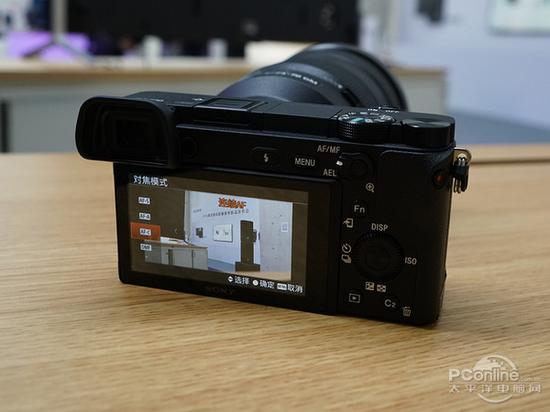 索尼A6300相机的背部依然采用了3寸的翻折屏幕设计,在背部的按键位置与上一代相比,按键位置有所改变,增加了AF/AE锁按键,视频拍摄键依然在右手把手位置上。