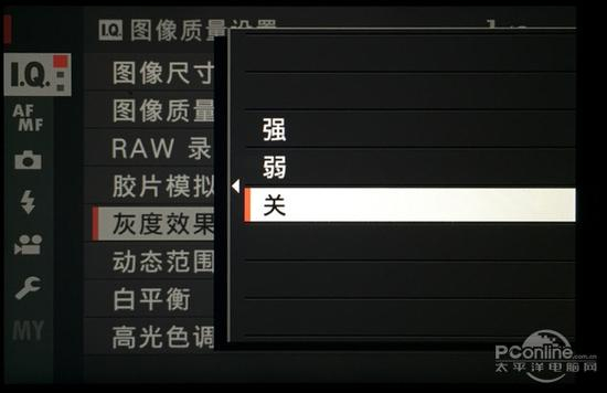 灰度效果是富士X-Pro2新增的功能,使用该功能可以增加画面颗粒感,没错,简单来说这就是人为加噪点。当然这个功能显然是应对新增的黑白胶片模拟效 果,因为纯净画面的黑白照片缺少了胶片的质感,所以可以选择人为添加一些颗粒感进去,这个功能有强和弱两档,建议使用黑白胶片模拟效果的时候打开这个功 能。对比可以发现,打开灰度效果后的黑白照片更有拍摄黑白胶片照的感觉,当然喜欢纯净画面的朋友应该将它关闭。
