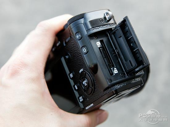 存储卡设计为双卡槽,支持双SD存储卡,和其他旗舰无反相机比起来,双存储卡卡槽更像旗舰的样子。事实上X-Pro2像素提升、支持14bit无损 RAW,处理器升级后,数据处理能力提升,确实有必要更多的存储空间去支持,双存储卡槽可以有更好的存储体验,是备受好评的一个升级卖点。
