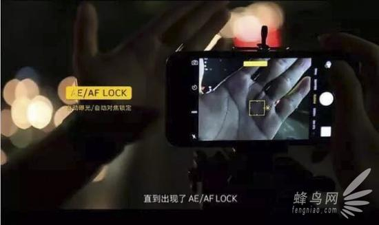 相对安卓手机的拼速度,iPhone手机就显得淡定多了。先对准近处(或是用手当对焦点),按住屏幕一点不动直到出现AE/AF锁定字样,然后再对准远处就会拍出光斑的效果了。