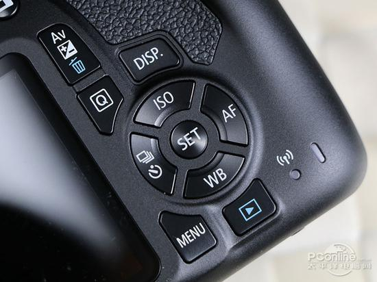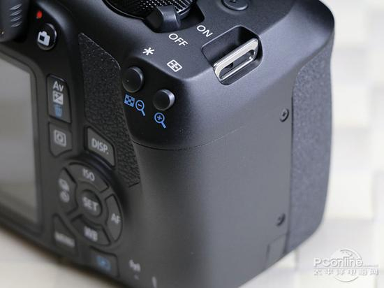 佳能EOS 1300D的Logo在相机左前侧,往上走是用于视频的单声道麦克风,1200D没有沿用双声道有些遗憾。按键布局沿袭佳能XX0D系列,这也是出于保留 用户操作习惯的考虑,减少升级机型时带来操作上的陌生感。1200D的按键很像700D,按键小但间隔大,操作舒适,不会出现误按情况。