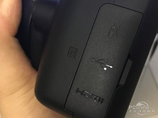 机身左侧的接口从上到下依次为USB接口、数据接口、HDMI接口,不支持MIC和监听。数据接口的属性依旧是那个落后,由于配备了座充,所以用充电宝 进行充电这事已经告吹了。底部是电池和存储卡的集成仓,没有独立的存储卡槽对于高级用户来说会不习惯,但入门来说影响不大,唯一有些担心的是使用脚架时, 快装板的位置可能会影响电池仓的打开,换电换卡不太方便。
