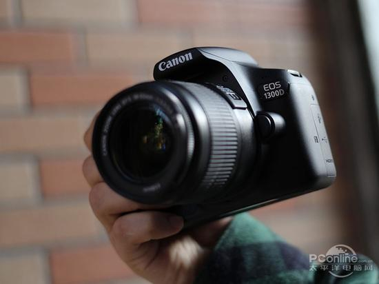 1300D套机并没有搭配最新的18-55mm f/3.5-5.6 IS STM镜头,而是采用了上一代的EF-S 18-55mm f/3.5-5.6 IS II镜头。两者最主要的差别是新一代镜头配备了STM步进马达而旧的则没有,STM的好处是可以加快对焦速度、而且更加流畅、宁静,但在画质上没有差别。 由于机身轻,配上18-55mm镜头显得有点头重脚轻。但整体线条圆润,握持手感好。
