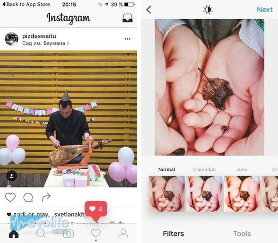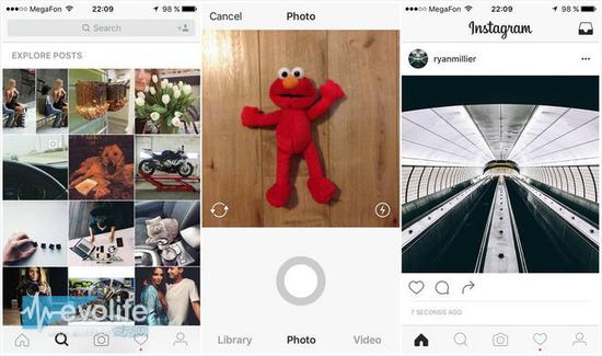 有这样一款app,在扁平化设计大行其道的今天,依然在使用拟物化图标,它就是Instagram。自从苹果推行扁平化以来,Instagram的界面似乎只改动过一次,之后就再也没有什么变化了。不过如今有爆料人透露,Instagram即将对界面进行重新设计,主题是黑白配?!