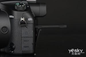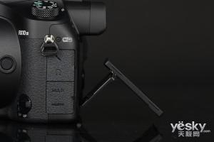 机身上部从左到右依次排列有拍摄模式选择拨轮、热靴、显示屏、开关快门键和曝光拨轮。甚至给人一个错觉,这难道不是一部专业的单反吗?