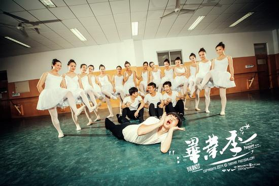 技巧要领:所有人朝向镜头,以画面中间者为中心点,分层向后延伸;中心点宜找有表现力或个小的人担任。