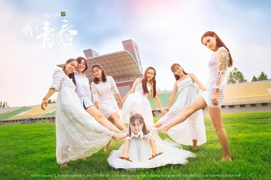 一般来说,一字排开的站位多少会显得有些木讷呆板。为了让画面生动,我们需要自己寻找趣味点,其中最容易做到的是统一做俏皮动作,当然你也可以和旁边的人搭肩互动、做手势等等。