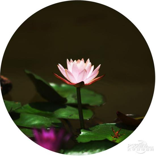 老法师“大湿”对荷花的拍摄就是顺手拈来,已经是行程了一种完整的套路,显示长焦拍摄,然后再正方形构图,白色圆形框框,古典金钱币造型,荷花放置在正中间。