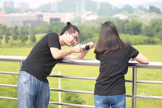 虽然现在已经是用数码相机了,但是,老法师“大湿”还是要突出一下他的专业性,拿出那个看似牛B的测光表,对准模特的脸部。