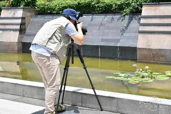 在拍摄荷花的时候,对于有一定年纪的老法师来说,三脚架是必备的拍摄工具,晒晒自己的长焦大炮镜头,外加一个闪光灯补光,站在远处用200毫米端对准荷花来拍摄。