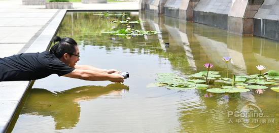 新锐的思想也是非常另类,从他的拍摄姿势就能看出来了,身体扒在水面上,似乎在感受水里的原始气息,额....。。似乎在用一个低角度来央视拍摄荷花,如果一手抖,人就掉近水里了,画面太美不敢想象。
