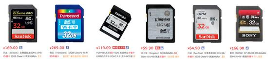 为让大家更直观的对比市面上不同速度的存储卡及其价位,下文将以在相机上应用最广泛的SD存储卡作为测试对象,并将其在电商平台不同容量、标速的价格为例,让大家先对SD存储卡的价格有简单了解。