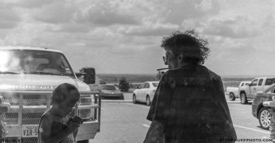这是一个中午,我正坐在卡车里吃饭,窗外有个孩子则正拖着他的奶奶要一个玩具。起初老人不同意,一个劲地说“不!不!不!”,但后来她还是把钱包给了孩子,又给自己点上了一根烟,看起来烟能让她轻松一些。
