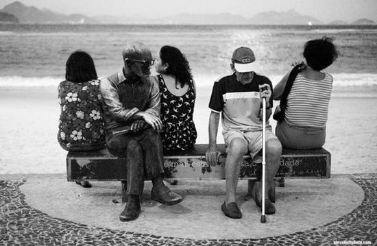 我花了好一会时间观察这个坐在长凳上的老人,他像尊雕塑一般,在十多分钟里几乎没做任何动作。在他身后有三位女士正在欣赏里约热内卢的海景,而这位老人可能正伴着海声回忆自己的人生吧。